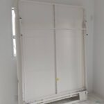 このお客様は、成人女性の方で、一部屋に机とベッドの配置ですので、テレワークの際に、ベッドは隠したいというご依頼で、設置となりました。地震の時を心配されておられましたが、展示場で見学の際に、実際に使用するばねをお見せし、かなり強力なばねであることをご説明し、購入となりました。お客様にて、三方枠とロールカーテンを設置されるということです。